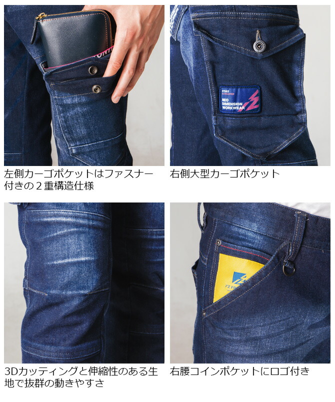 作業服 カーゴパンツ デニム 3D アイズフロンティア オールシーズン対応 IZ-7252 溶接塗装土木作業着 IZ FRONTIER 2カラー