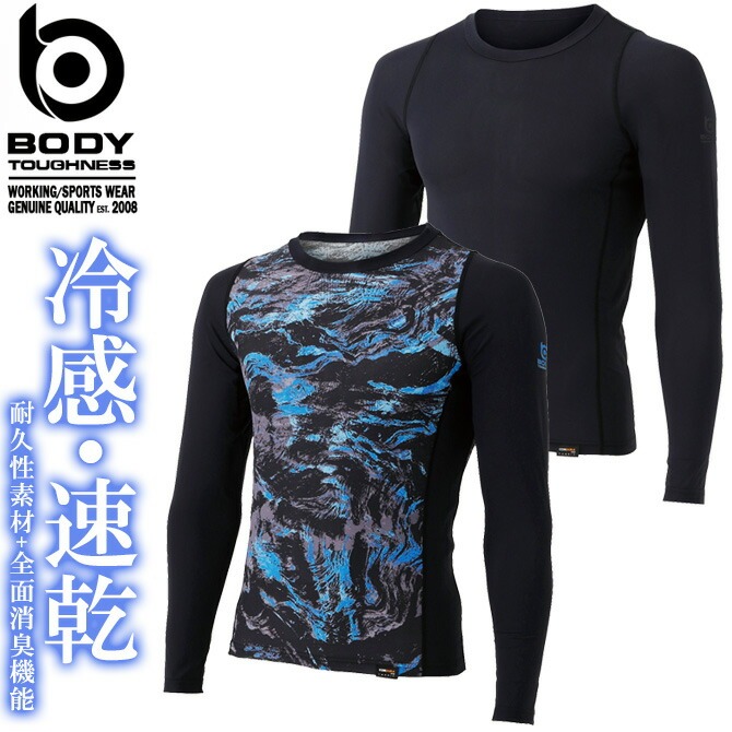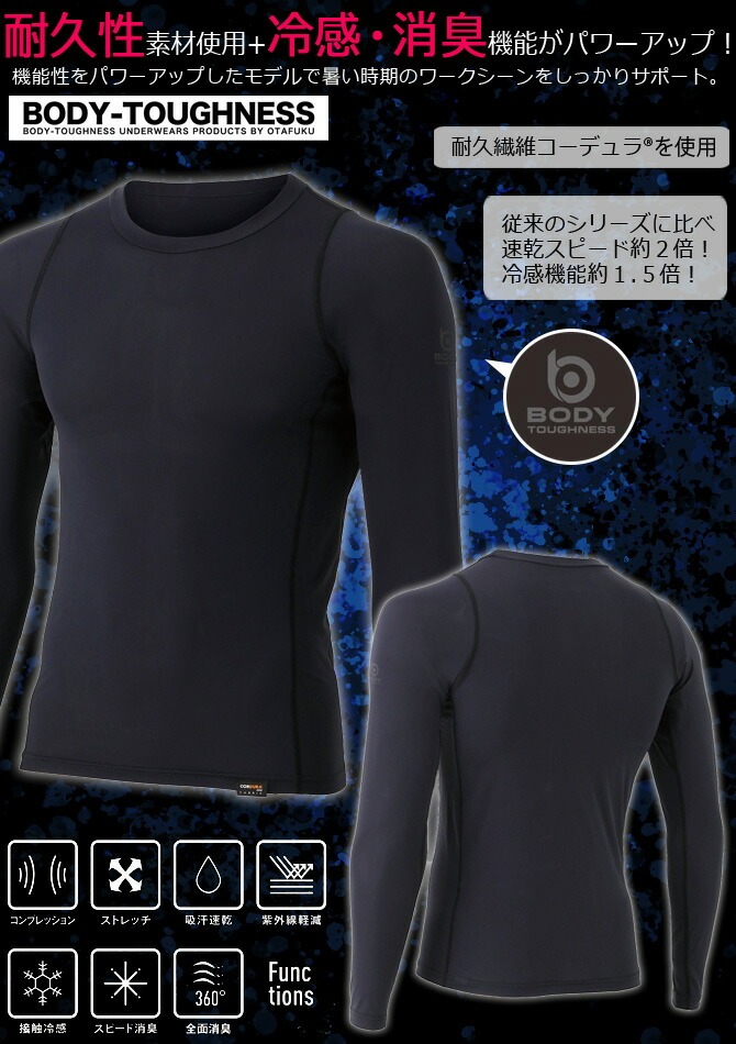 【1点までネコポス可】クールコンプレッション BT 冷感 消臭 パワーストレッチ 7分袖 クルーネックシャツ BODY TOUGHNESS(ボディタフネス) JW-629 メンズ おたふく手袋 接触冷感 消臭 吸汗 速乾 UVカット ストレッチ インナー 作業服 春夏用