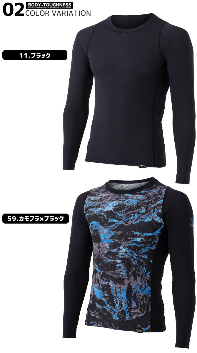 【1点までネコポス可】クールコンプレッション BT パワーストレッチ EVO ロングスリーブ バックハイネックシャツ BODY TOUGHNESS(ボディタフネス) JW-727 メンズ おたふく手袋 メンズ 接触冷感 消臭 吸汗 速乾 UVカット ストレッチ インナー 作業服 春夏用