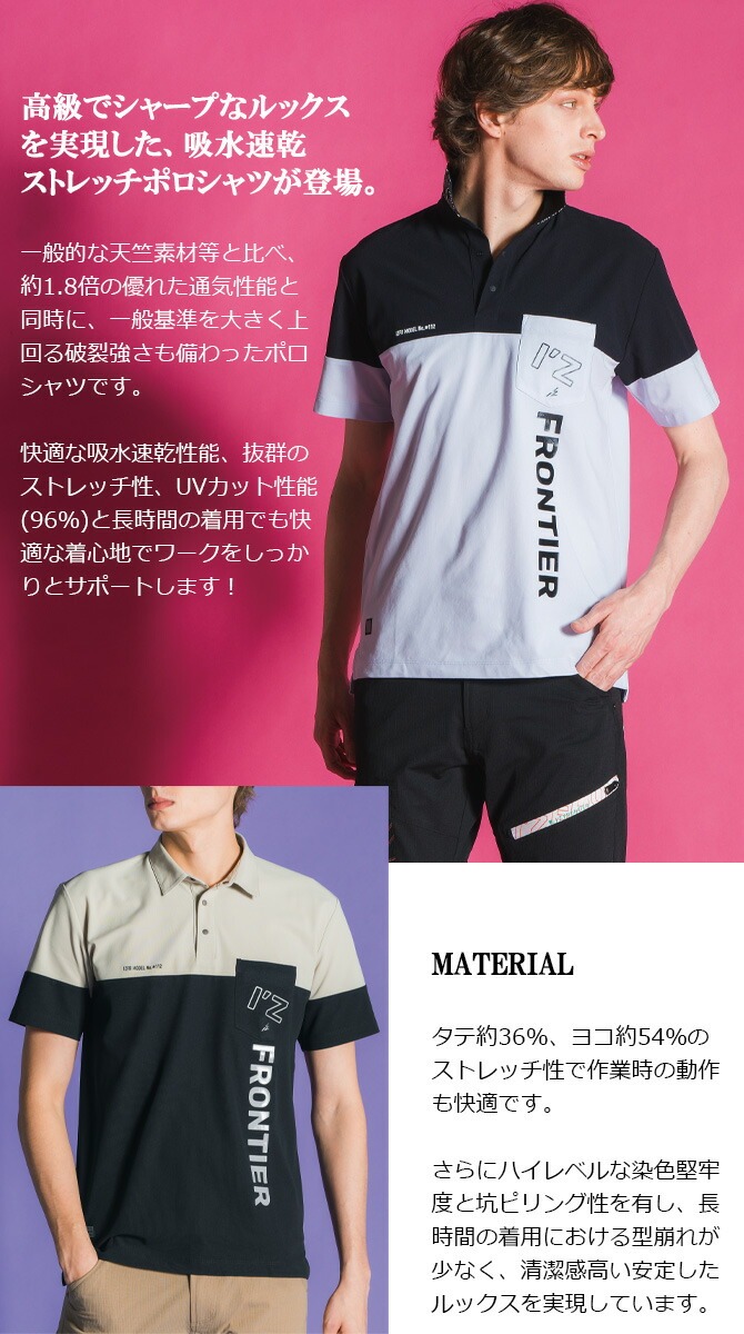 【1点までネコポス可】ストレッチドライ半袖ポロシャツ IZ FRONTIER アイズフロンティア IZ-705 春夏 4カラー メンズ ストレッチ 抗菌防臭 作業服 作業着