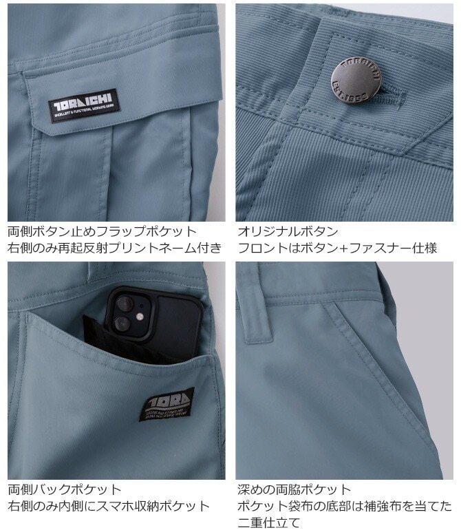 デニムカーゴパンツ ノータック 8970-219 TORAICHI 寅壱 ストレッチ 接触冷感 軽量 春夏 メンズ ワークパンツ Gパン 8970シリーズ 作業服 作業着