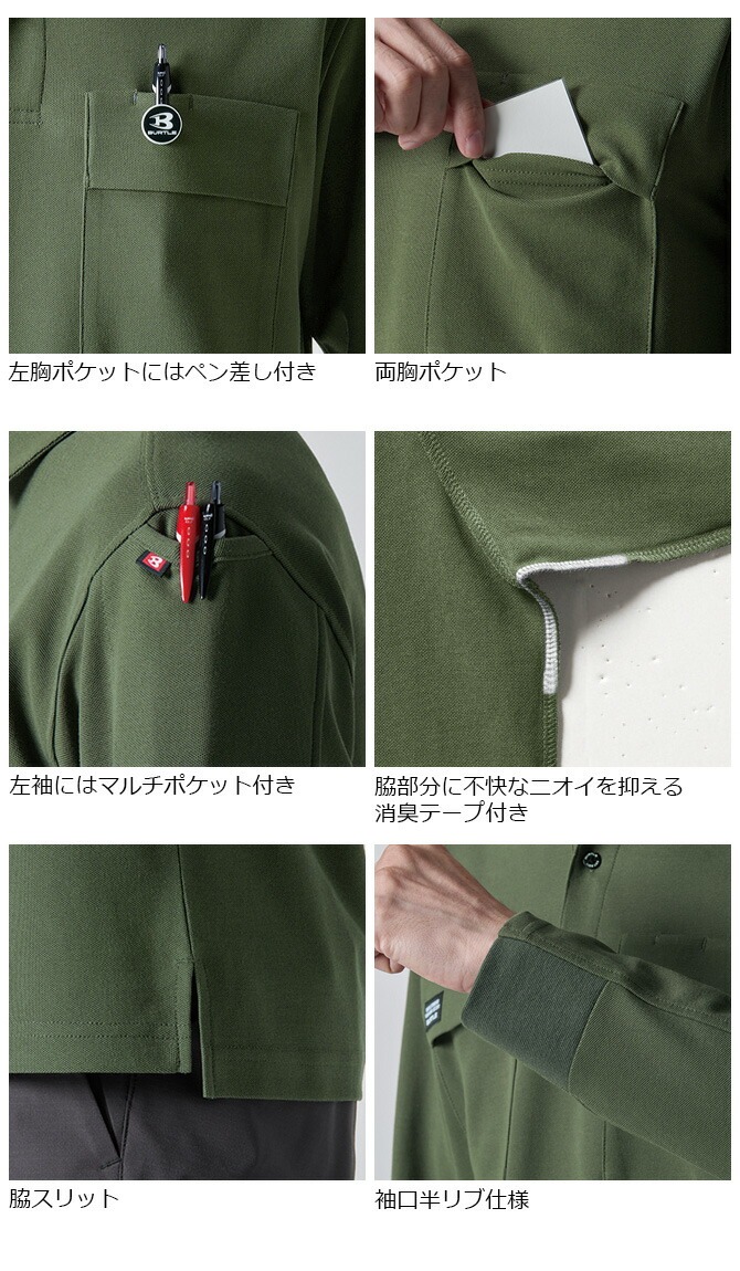 【1点までネコポス可】ポロシャツ SS-5L 長袖 バートル ストレッチ 作業着 作業服 吸汗 速乾 消臭 メンズ レディース 男女兼用 BURTLE 413