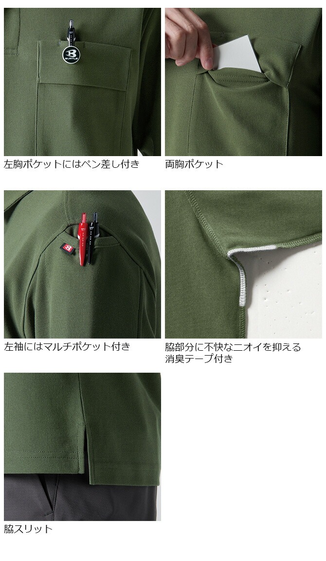 【1点までネコポス可】ポロシャツ SS-5L 長袖 バートル ストレッチ 作業着 作業服 吸汗 速乾 消臭 メンズ レディース 男女兼用 BURTLE 413