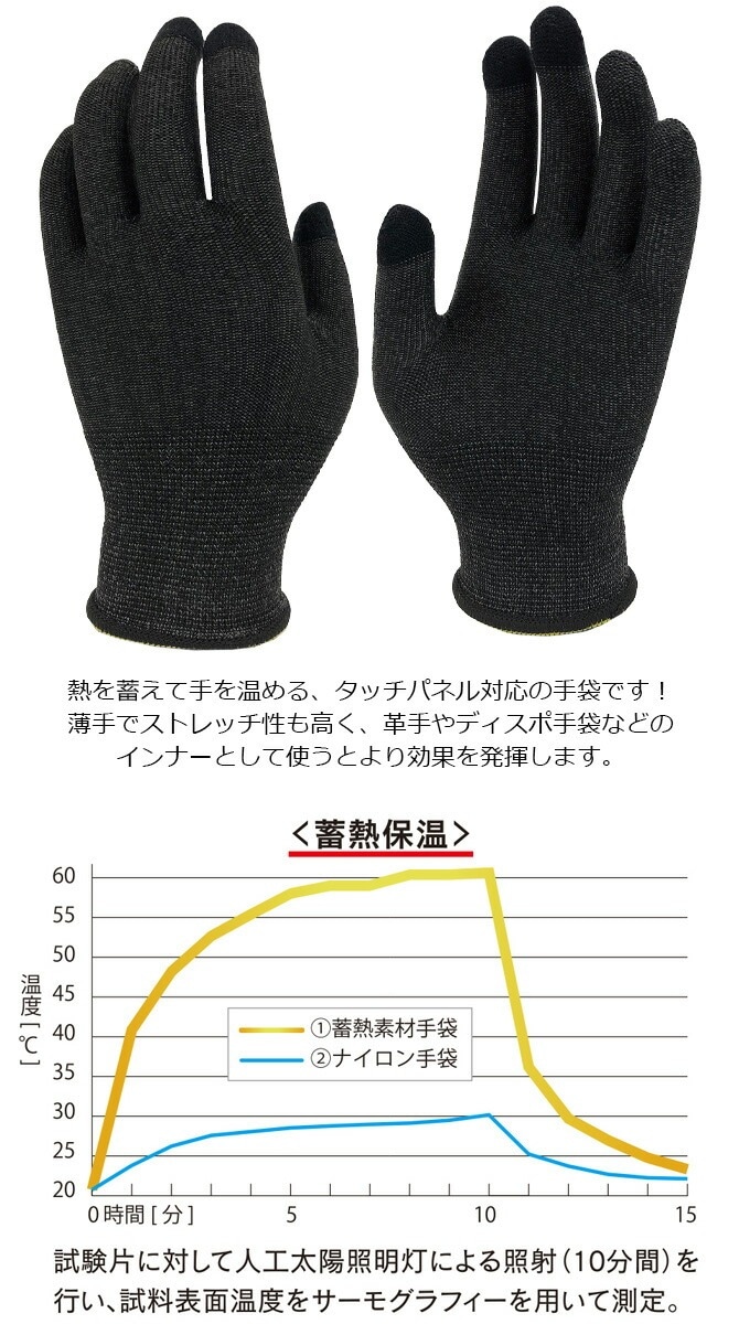 繊維に蓄熱粉末を練りこんでおり、熱を蓄え、手を温めます。