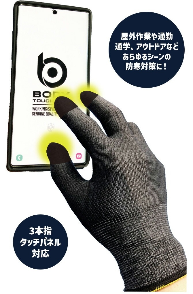 BODY TOUGHNESS(ボディタフネス)の「BT タッチパネル対応 蓄熱インナーグローブ」です。