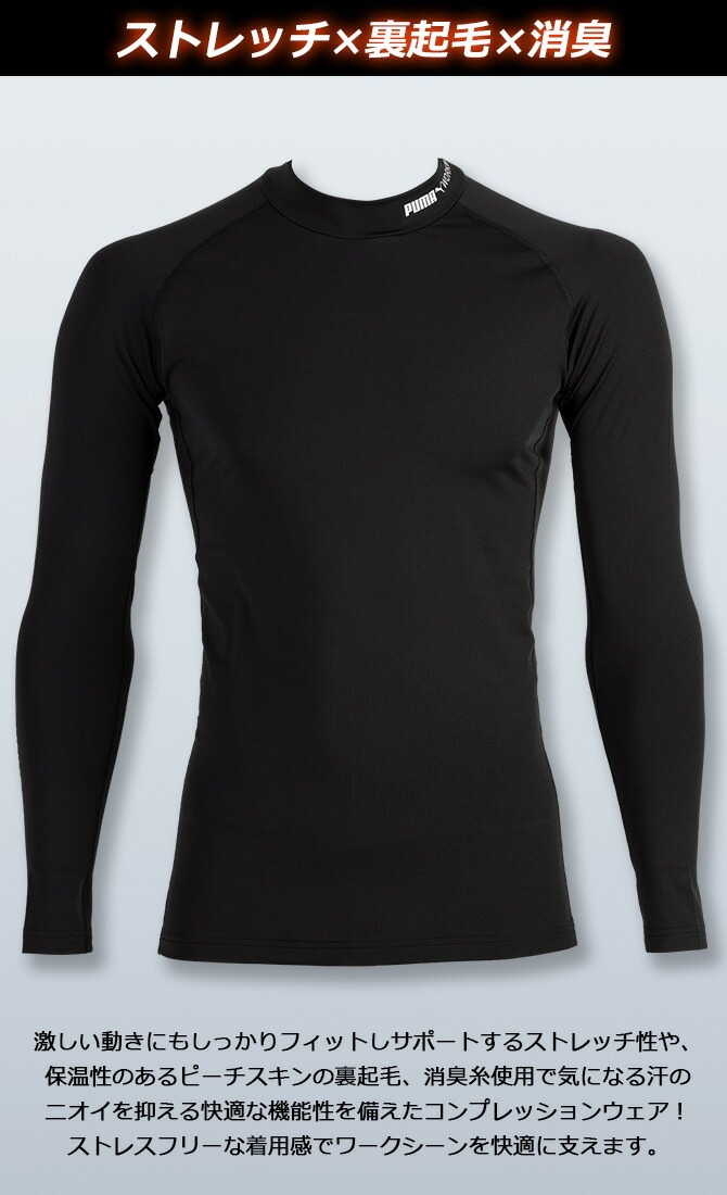 【1点までネコポス可】ホットコンプレッション 作業ウェア PUMA 長袖 パフォーマンスウェア プーマ ワークウェア ( PUMA WORKWEAR ) PW-2030W メンズ 秋冬 裏起毛 保温 消臭 ストレッチ サーマルストレッチシリーズ 作業服 作業着