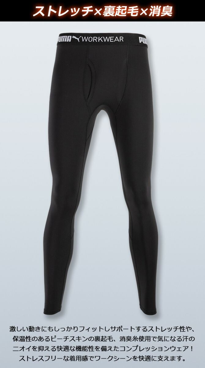 【1点までネコポス可】ホットコンプレッション 作業ウェア PUMA 長袖 パフォーマンスウェア プーマ ワークウェア ( PUMA WORKWEAR ) PW-2030W メンズ 秋冬 裏起毛 保温 消臭 ストレッチ サーマルストレッチシリーズ 作業服 作業着