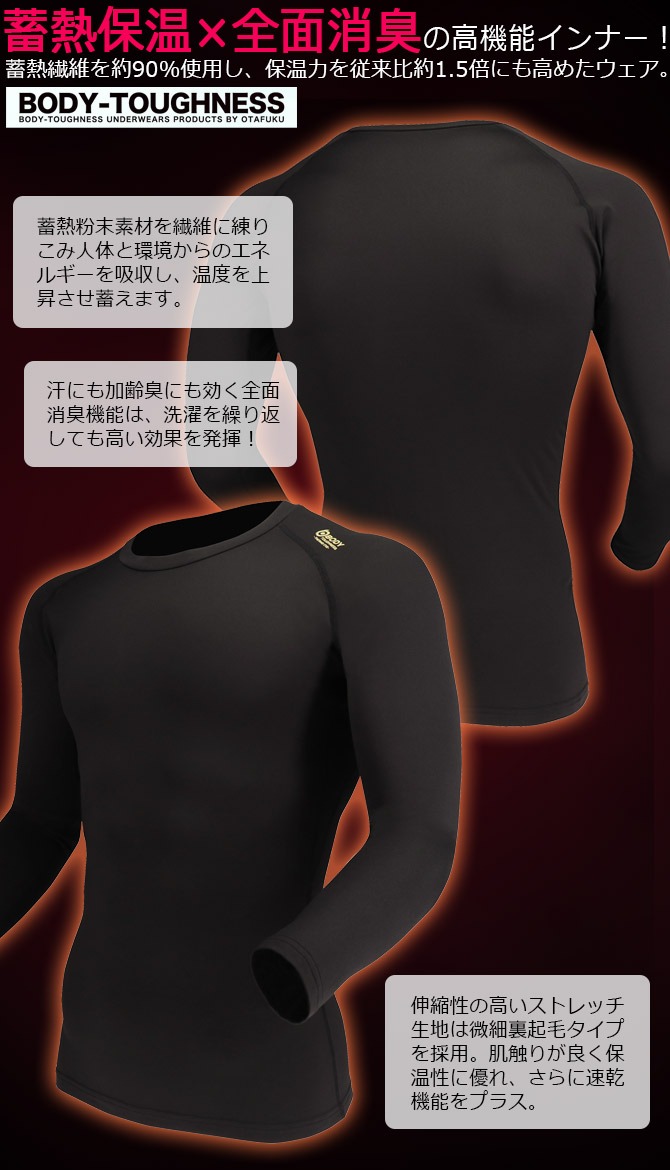 【1点までネコポス可】BT 発熱吸汗速乾 クルーネックシャツ JW-155 秋冬 BODYTOUGHNESS ホットコンプレッション ボディタフネス おたふく手袋 アウトドア スポーツ 発熱 保温 吸汗速乾 作業服 作業着