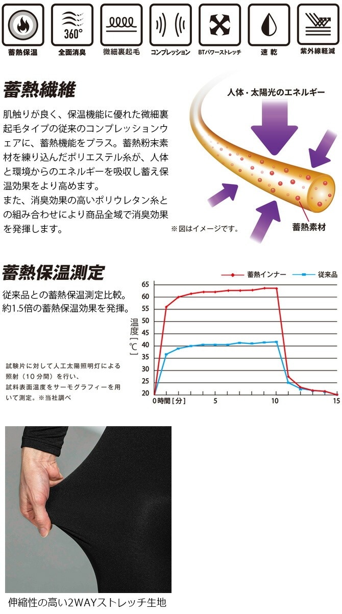 【1点までネコポス可】ホットコンプレッション BTパワーストレッチ サーモ エボ 前開きロングタイツ BODY TOUGHNESS(ボディタフネス) JW-241 メンズ レディース おたふく手袋 秋冬 ストレッチ 蓄熱保温 全面消臭 速乾 紫外線軽減 インナー 作業服 作業着