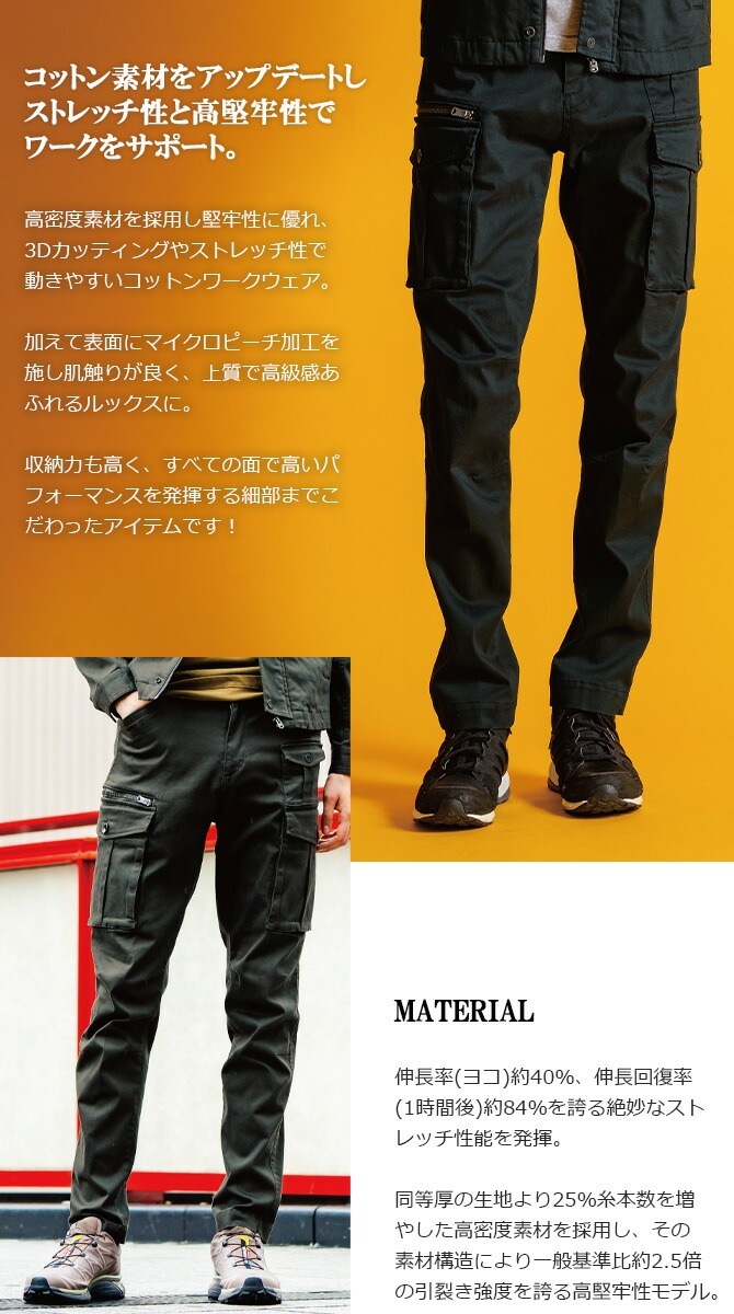 ストレッチ3Dカーゴパンツ IZ FRONTIER(アイズフロンティア) 7342 メンズ オールシーズン 作業服 3カラー 作業着 デニム