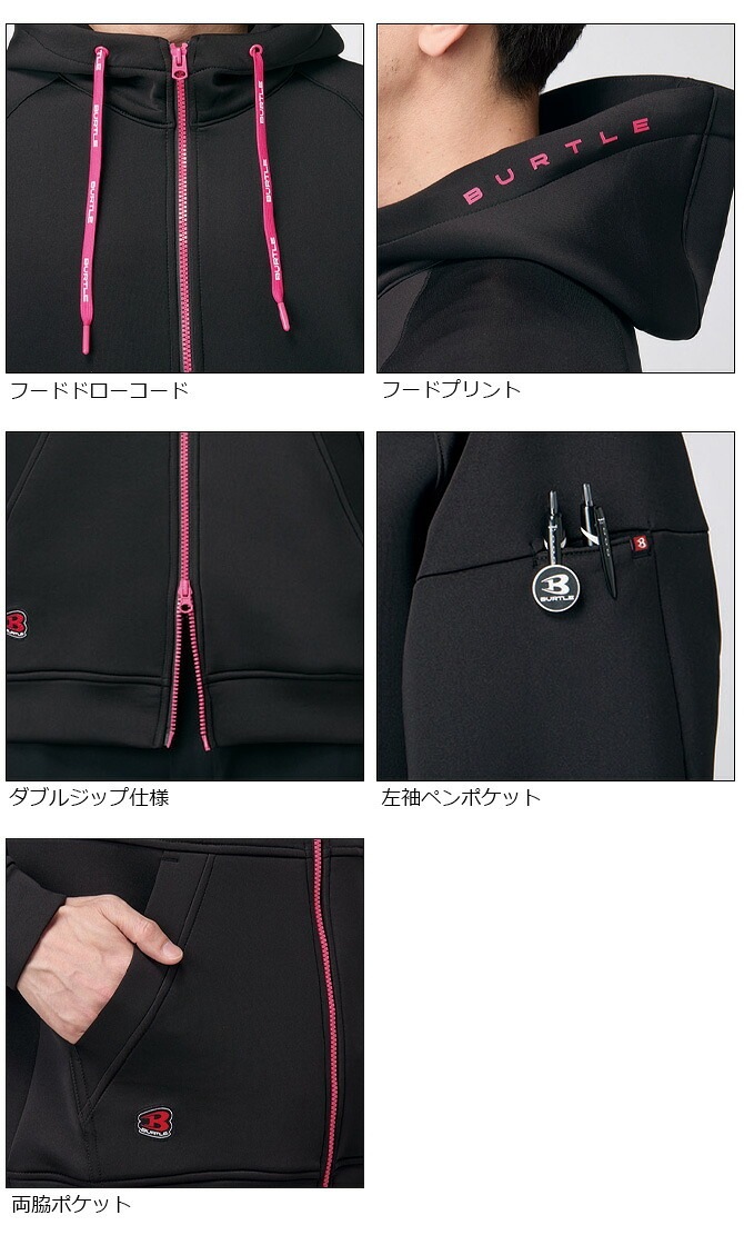 バートル 4WAYストレッチ フーディジャケット 9505 オールシーズン 秋冬 春夏 BURTLE メンズ レディース ジップアップパーカー クレイジーストレッチ 帯電防止 耐久 撥水 防汚 9501シリーズ ワークブルゾン 作業服 作業着