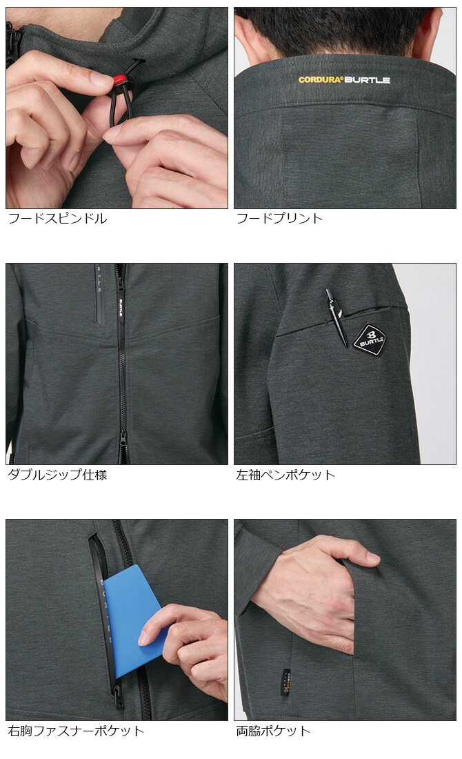 バートル 4WAYストレッチ フーディジャケット 9505 オールシーズン 秋冬 春夏 BURTLE メンズ レディース ジップアップパーカー クレイジーストレッチ 帯電防止 耐久 撥水 防汚 9501シリーズ ワークブルゾン 作業服 作業着