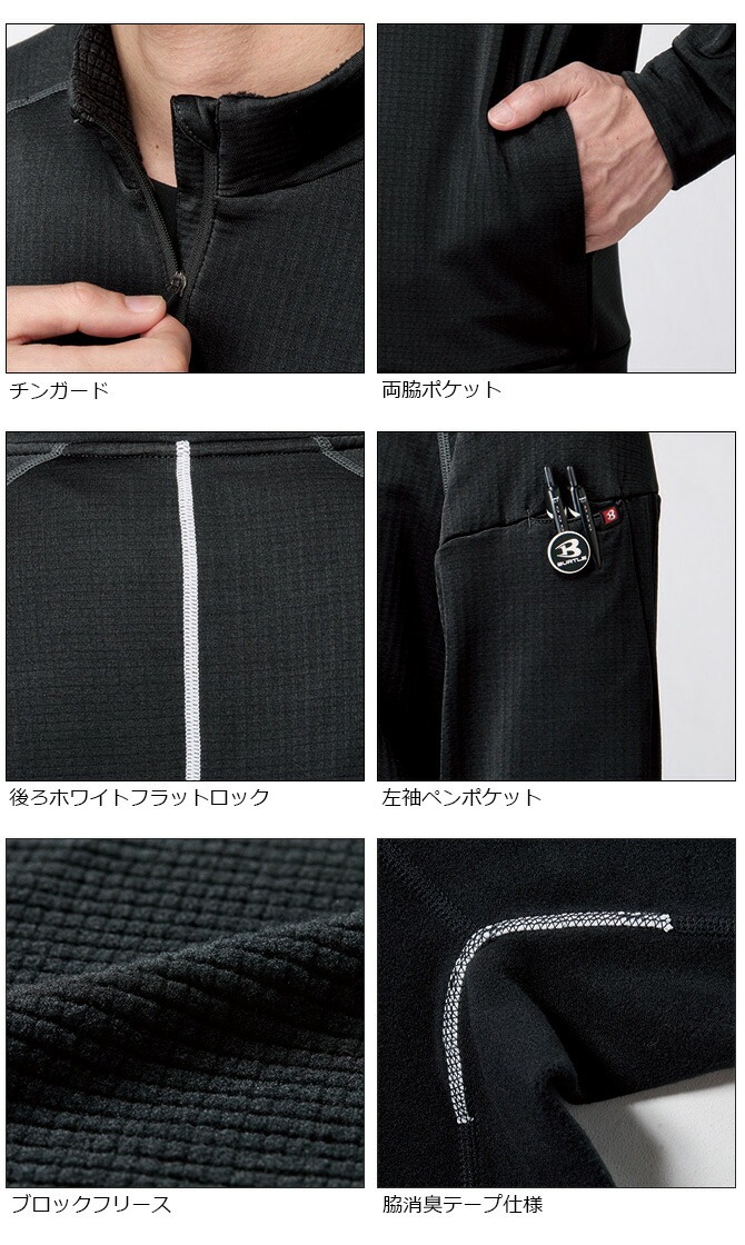バートル エアーテックハーフジップ 2025年 2026年 秋冬 新作 ハイネック ジップ トレーナー BURTLE 4111 メンズ レディース 4095シリーズ 保温 消臭 制電 作業服 作業着
